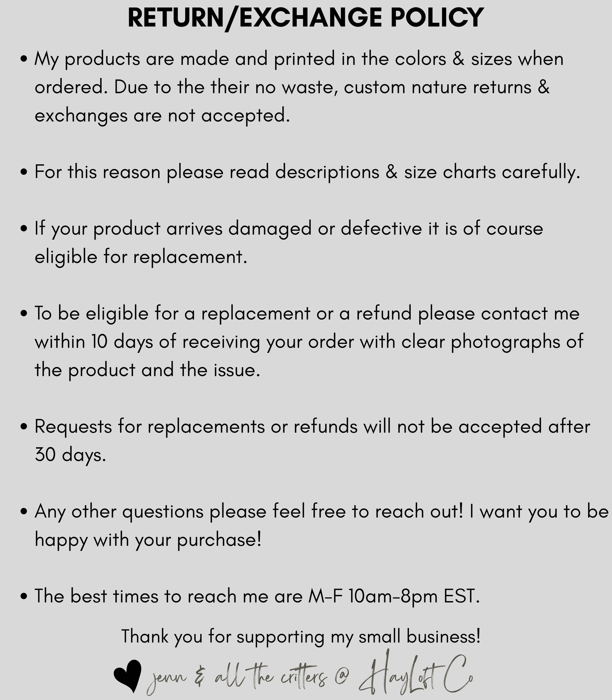 ā¹ļø RETURNS/REFUNDS: Please read size information carefully as due to the custom nature of these shirts I do not accept returns/exchanges. Please feel free to reach out to me though if you have any questions or problems with your order as I want you to be happy with your purchase!